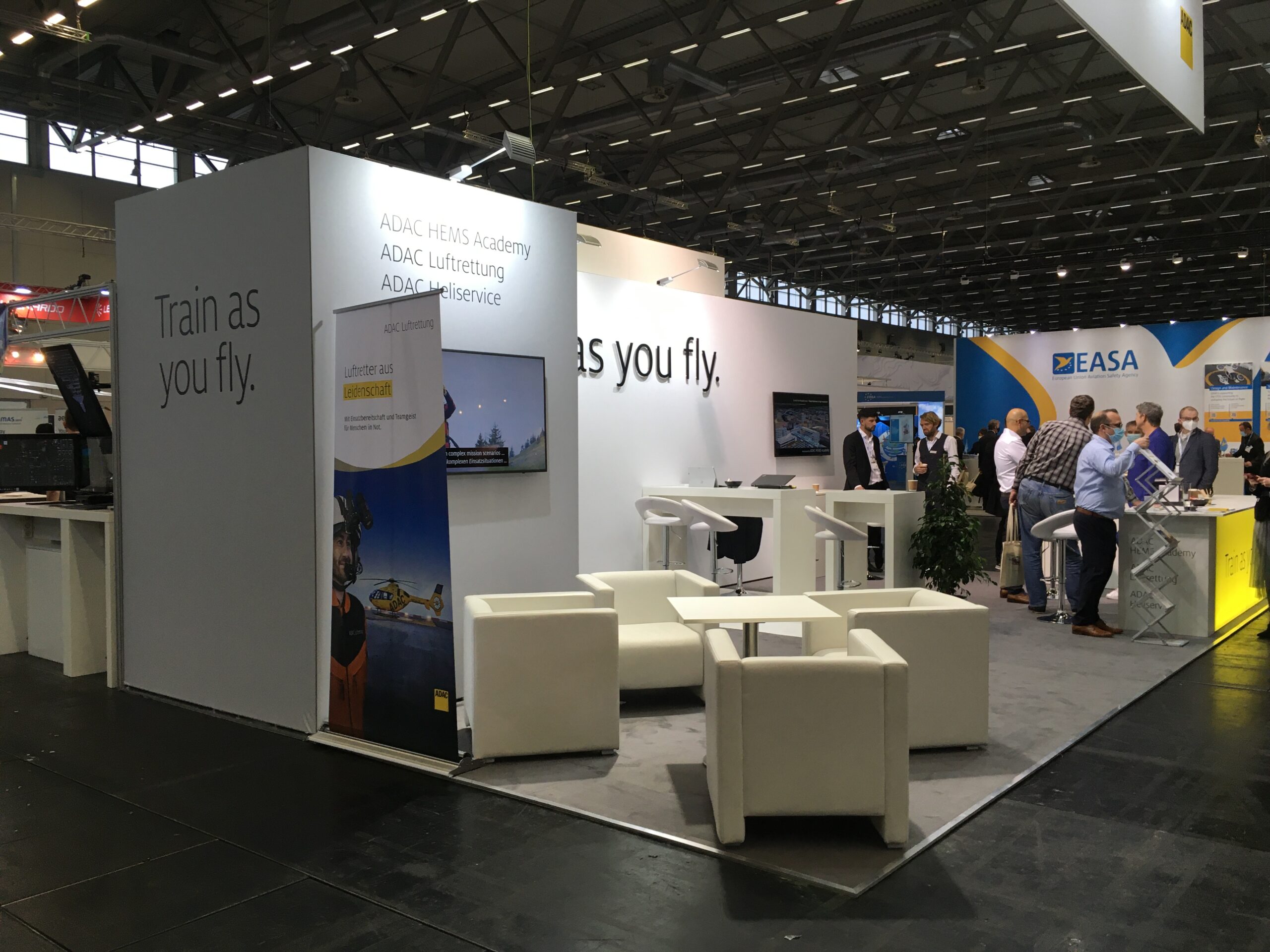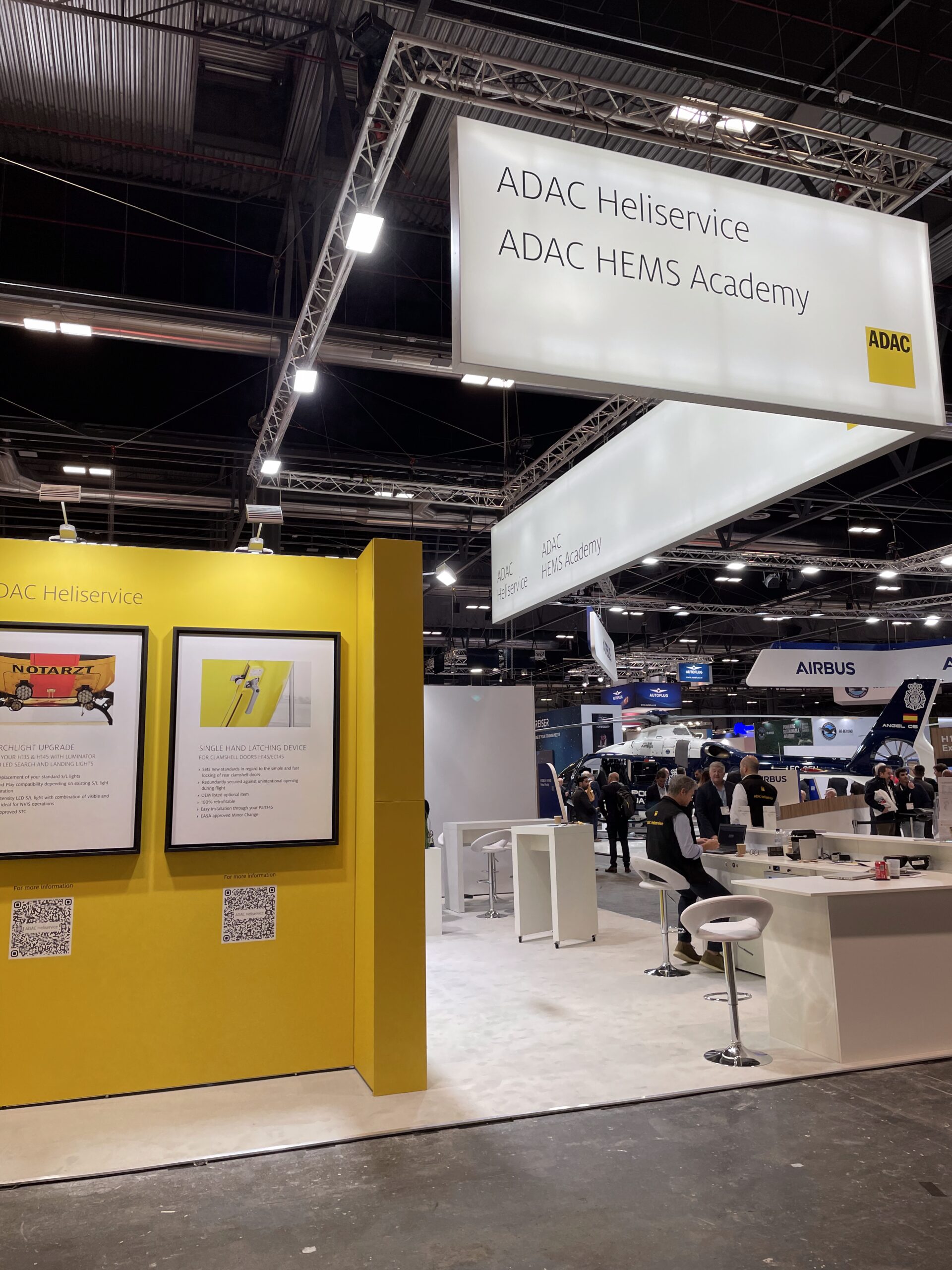 Seit Beginn der Zusammenarbeit zwischen Protec Messebau und dem ADAC Heliservice überzeugt der Messeauftritt durch ein unverkennbares Corporate Design in Weiß mit gelben Akzenten. Auf der European Rotors in Köln, Madrid und Amsterdam realisiert Protec Messebau individuell angepasste Messestände zwischen 20 und 50 Quadratmetern, die durch klare Linien, helle weiße Möbel und eine moderne, einladende Atmosphäre bestechen. So entsteht ein professioneller Auftritt mit hoher Wiedererkennbarkeit, der die Werte des ADAC Heliservice – Sicherheit, Kompetenz und Vertrauen – wirkungsvoll transportiert und die starke Markenpräsenz auf jeder Messe unterstreicht.