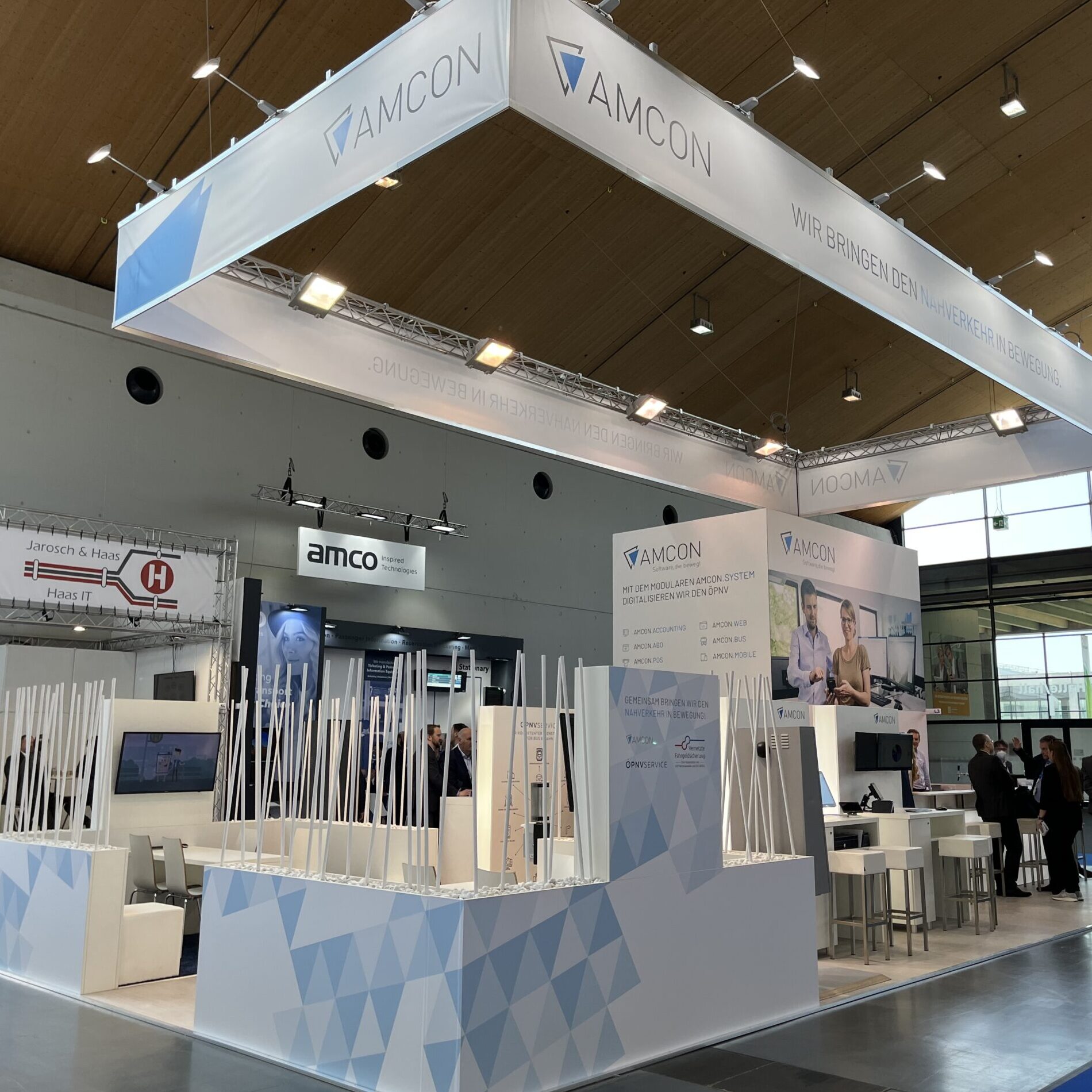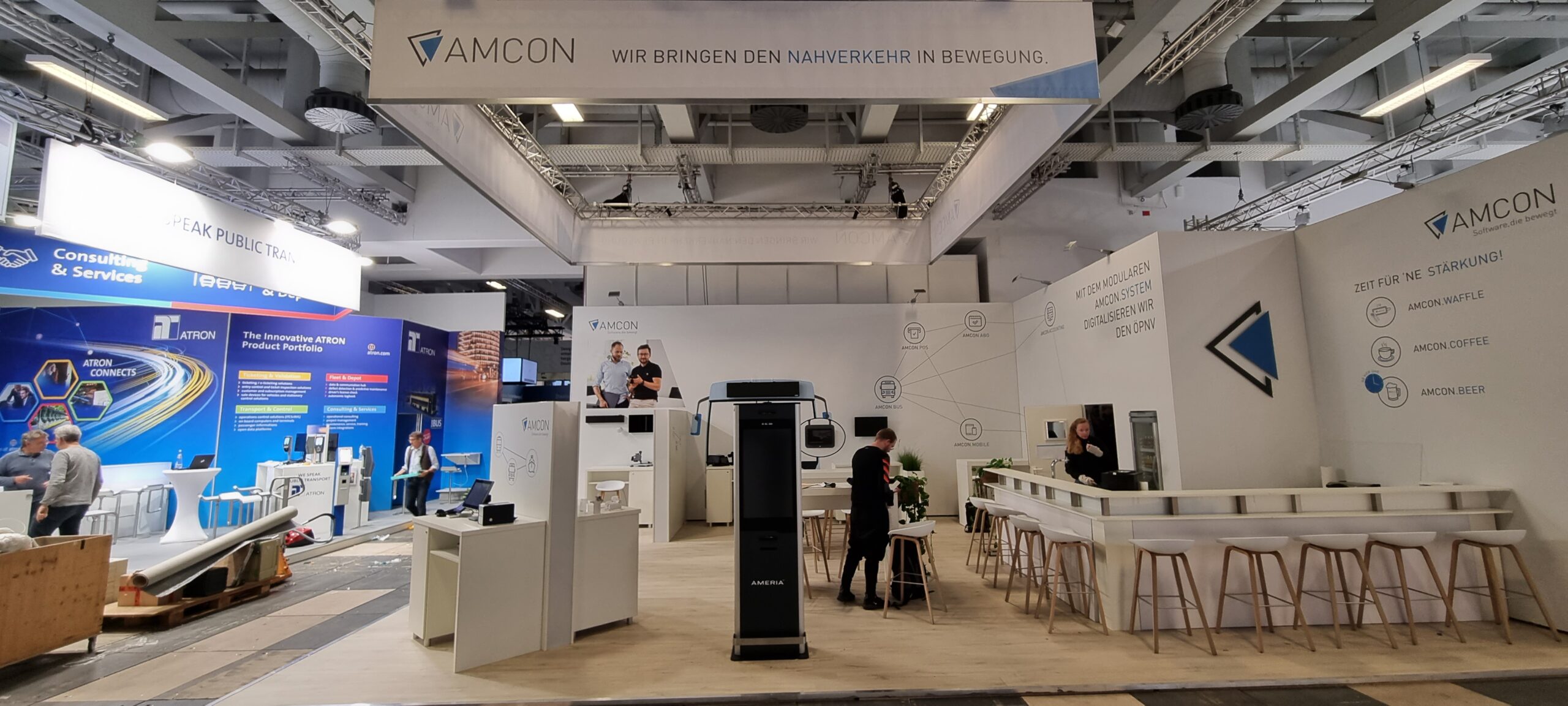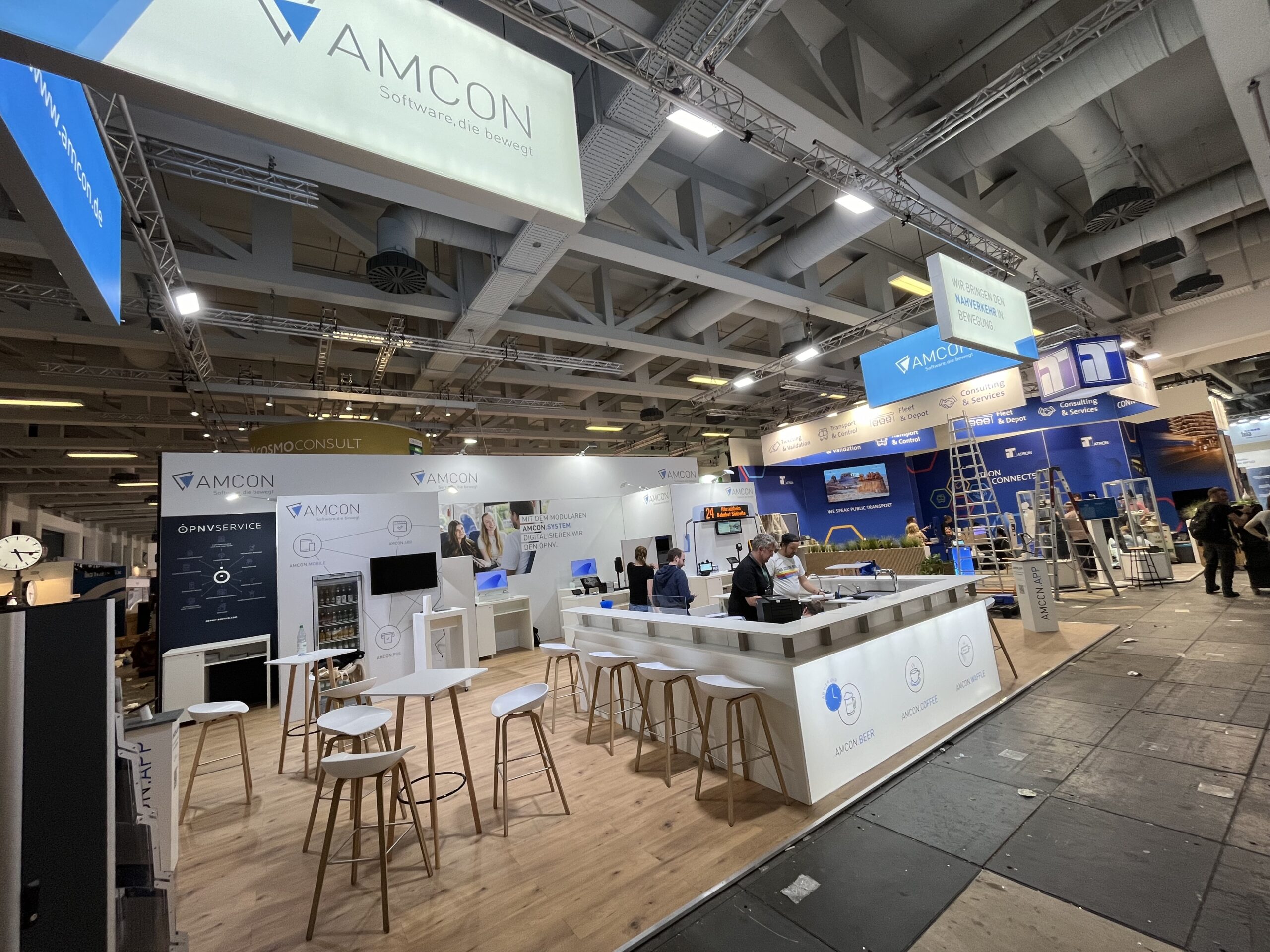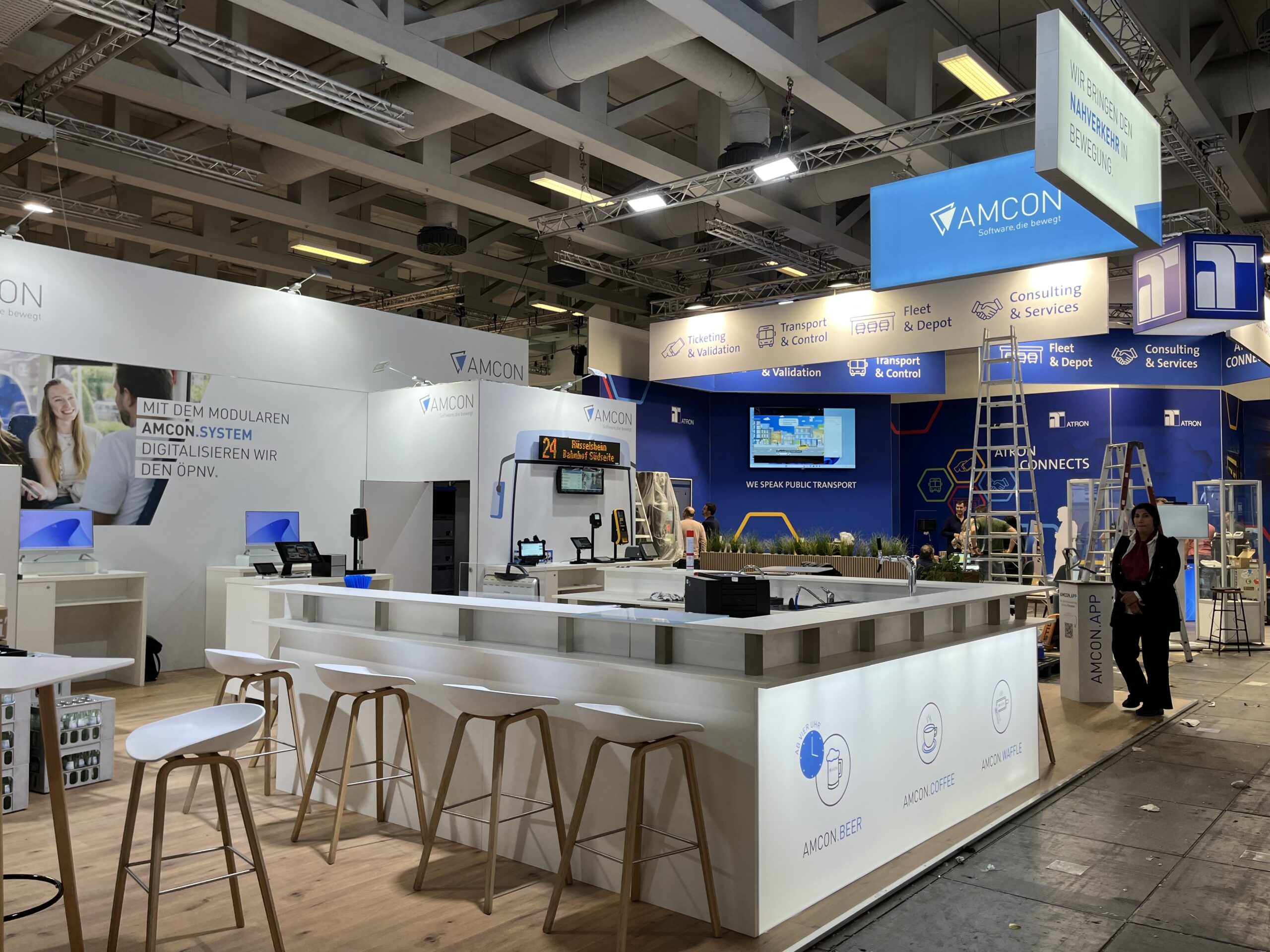 Die erfolgreiche Zusammenarbeit zwischen Amcon Software GmbH und Protec Messebau zeigt sich auf renommierten Public Transport Messen wie dem UITP Summit in Hamburg, der InnoTrans in Berlin und der IT-Trans in Karlsruhe. Für Amcon entwickelt Protec Messebau moderne, einladende Messestände mit großzügigem Cateringbereich und zahlreichen Besprechungsmöglichkeiten, die Raum für persönliche Gespräche und Netzwerken bieten. Unterschiedliche Highlights wie ein Eis-Bike oder die Präsentation eines Linienbusses sorgen für Aufmerksamkeit und machen den Stand zu einem echten Publikumsmagneten. Ergänzt durch interaktive Infostationen wird die innovative Softwarewelt von Amcon erlebbar – ein ganzheitliches Messekonzept, das Technik, Kommunikation und Gastfreundschaft perfekt verbindet.