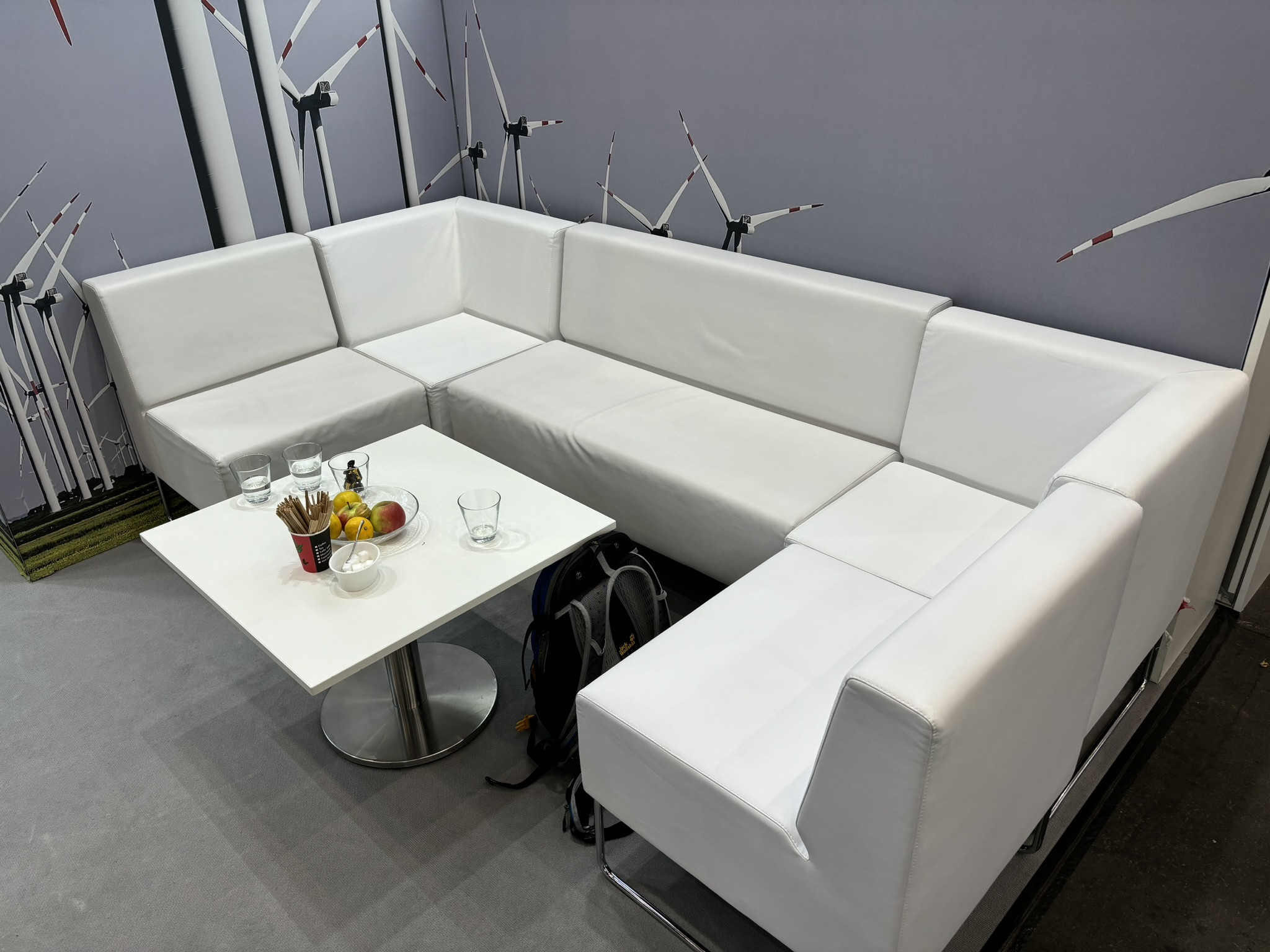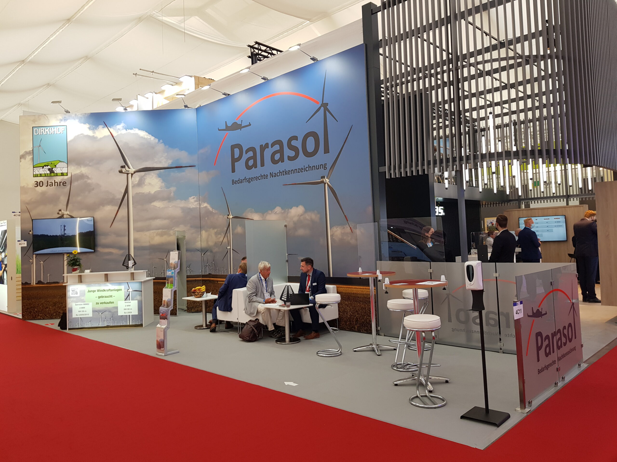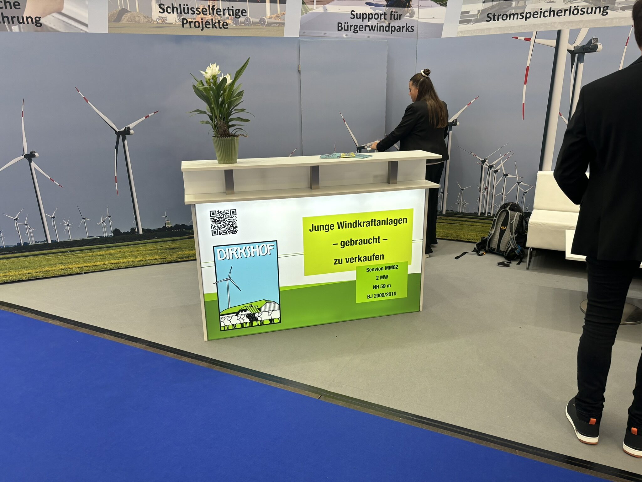 Protec Messebau zeigt beim Stand der Dirkshof EED GmbH & Co. KG auf Messen wie der Husum Wind und der WindEnergy Hamburg, wie sich selbst aus einer schmalen, langen Fläche ein überzeugender und funktionaler Messeauftritt gestalten lässt. Eine großformatige Grafik an der Wand vermittelt das Gefühl, direkt an den Windkraft-Anlagen an der Nordsee zu stehen, und sorgt für eine helle, ansprechende und einladende Atmosphäre.