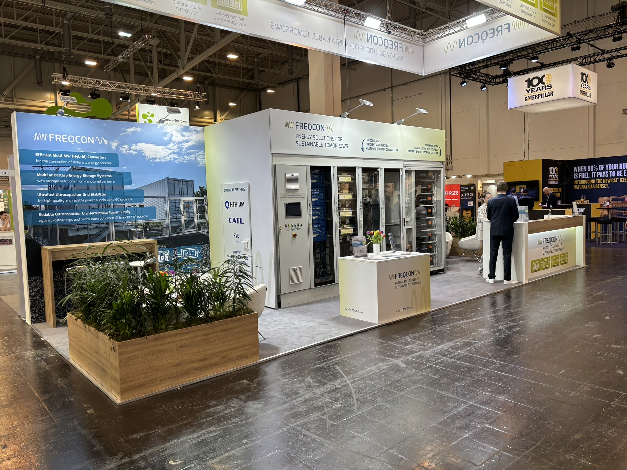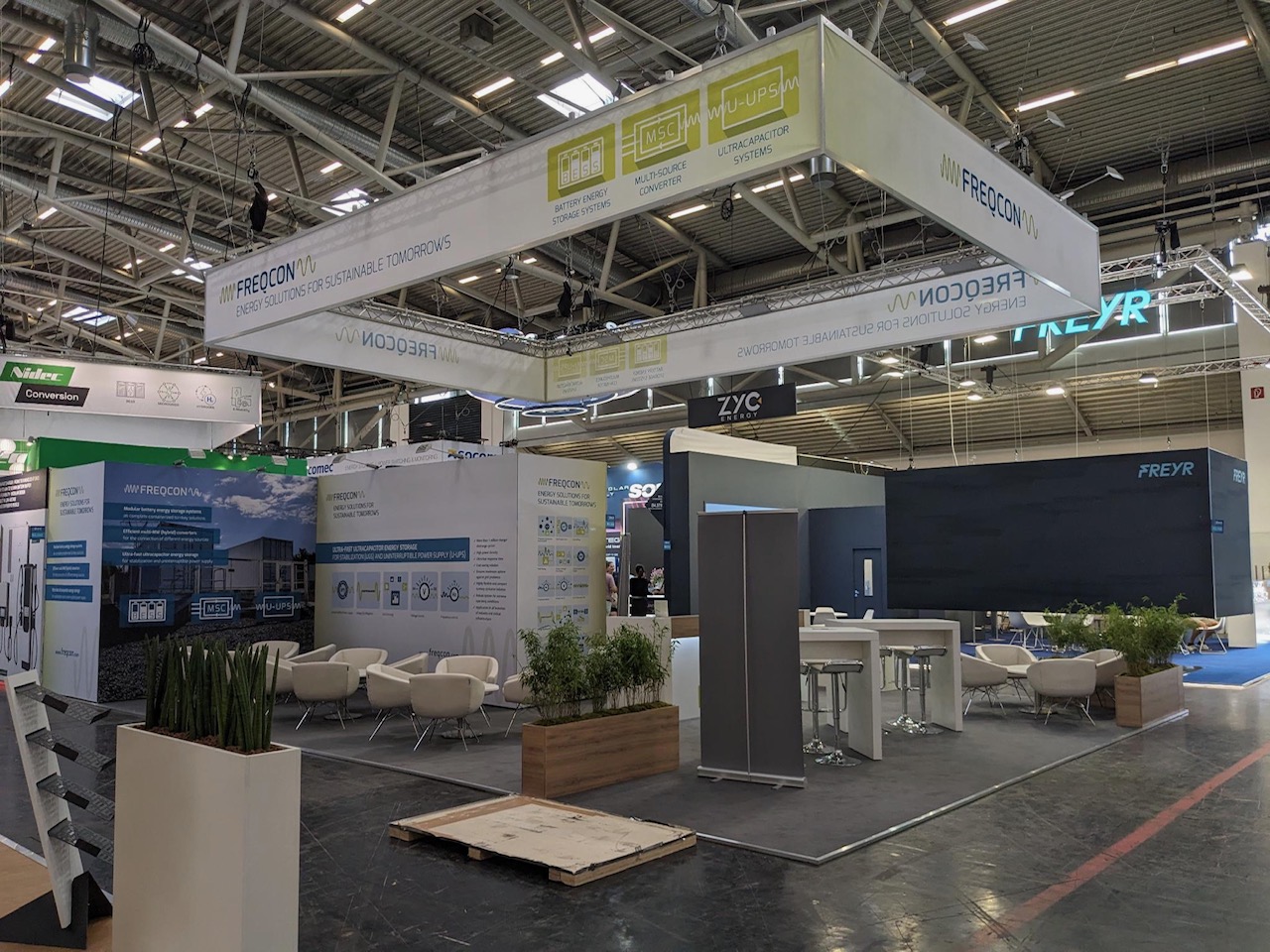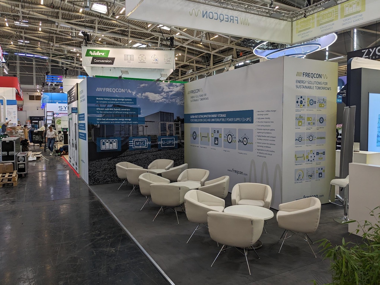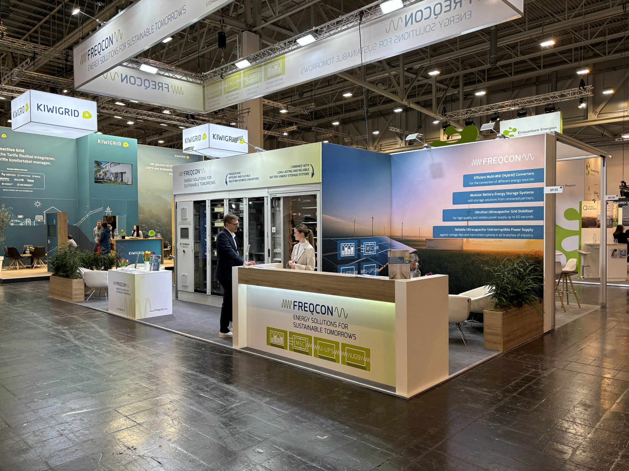 Mit diesem durchdachten Messekonzept setzt Protec Messebau die Innovationskraft von Freqcon auf führenden Energiefachmessen optimal in Szene.