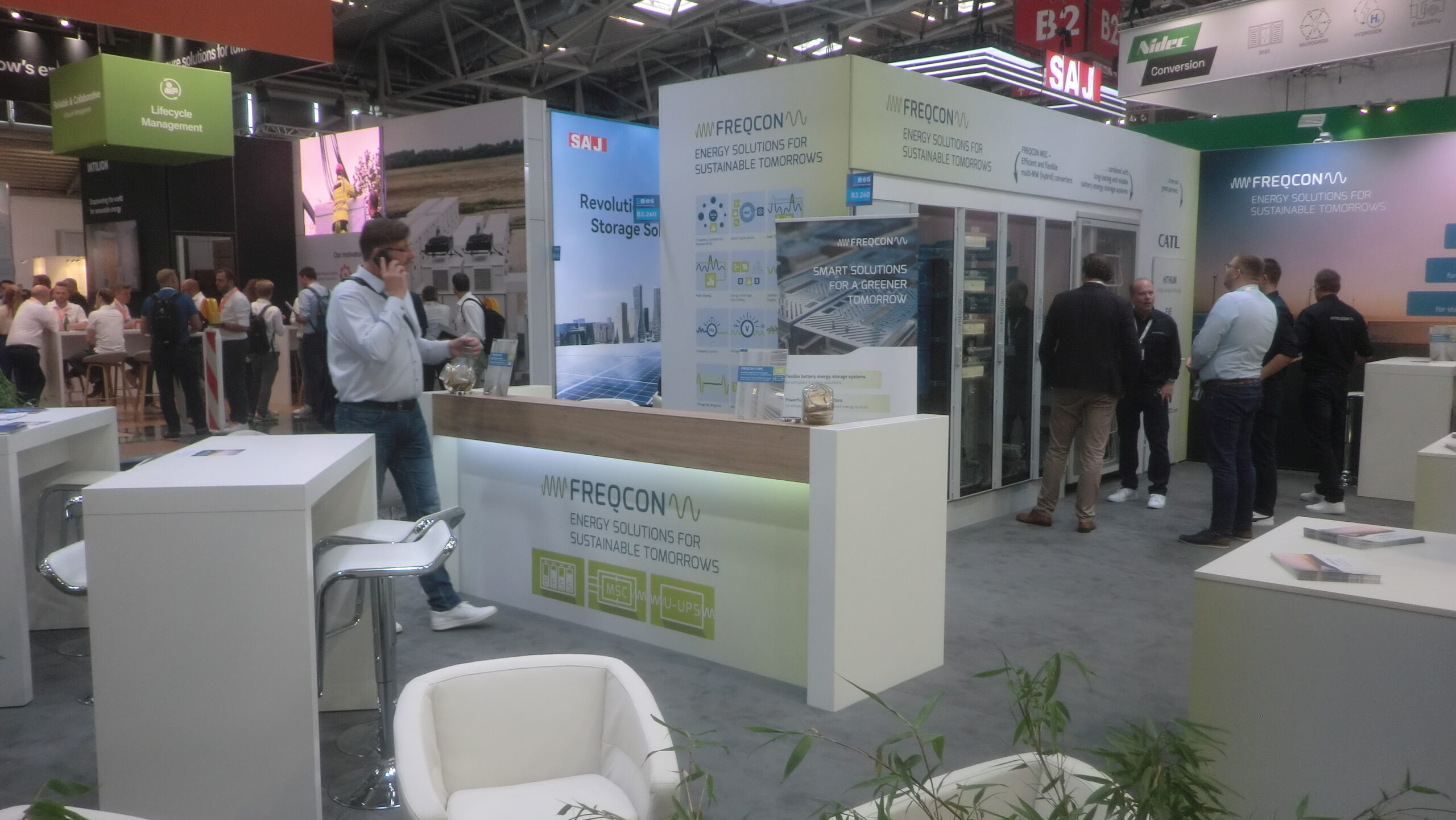 Für Freqcon realisiert Protec Messebau seit mehreren Jahren technisch anspruchsvolle und markenstarke Messeauftritte – unter anderem auf der e-World, der Intersolar und der WindEnergy. Die Stände überzeugen durch ein klares, modernes Design, das perfekt auf die Präsentation von Energiespeicher- und Umrichterlösungen abgestimmt ist.