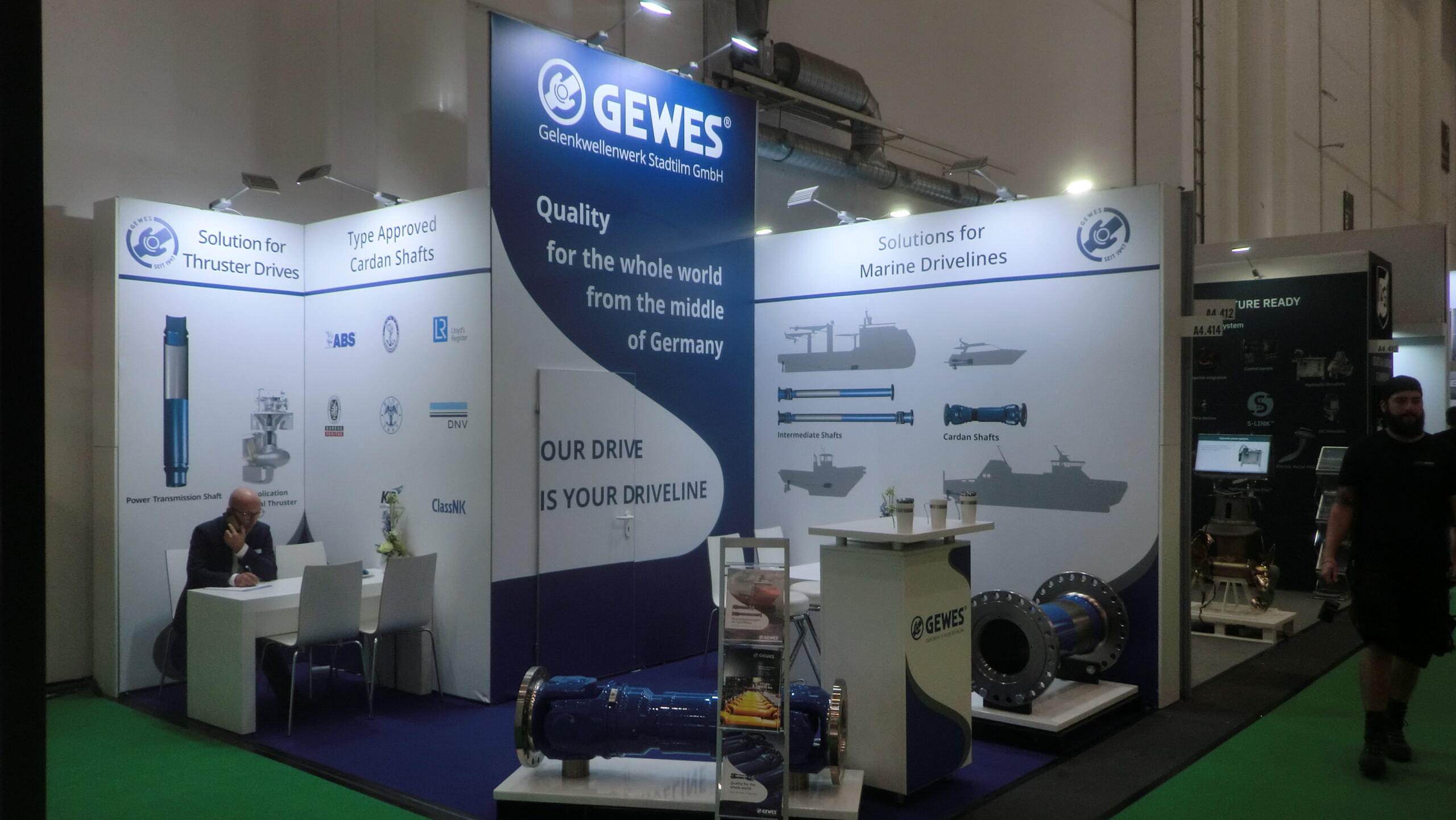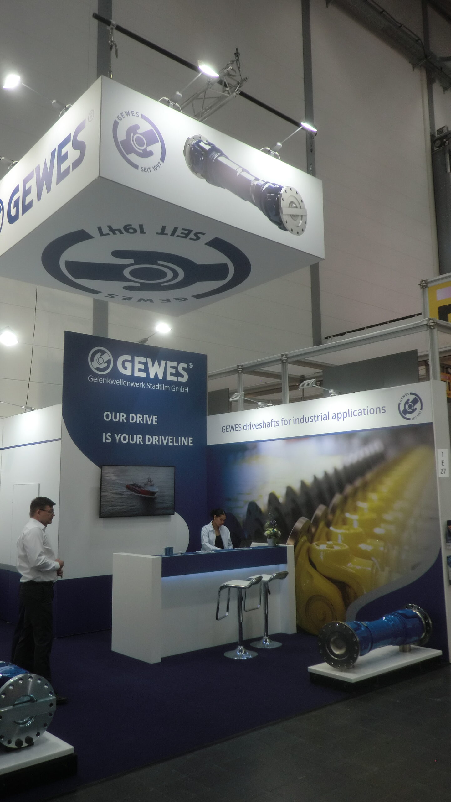 Direkt neben dem zentral platzierten Tresen wurden die Exponate optimal sichtbar positioniert. Zwei Besprechungstische ermöglichten ruhige Fachgespräche auf engem Raum. Eine erhöhte Wand mit dem GEWES-Logo sorgte für starke Fernwirkung in der Messehalle und erhöhte die Wiedererkennung deutlich.