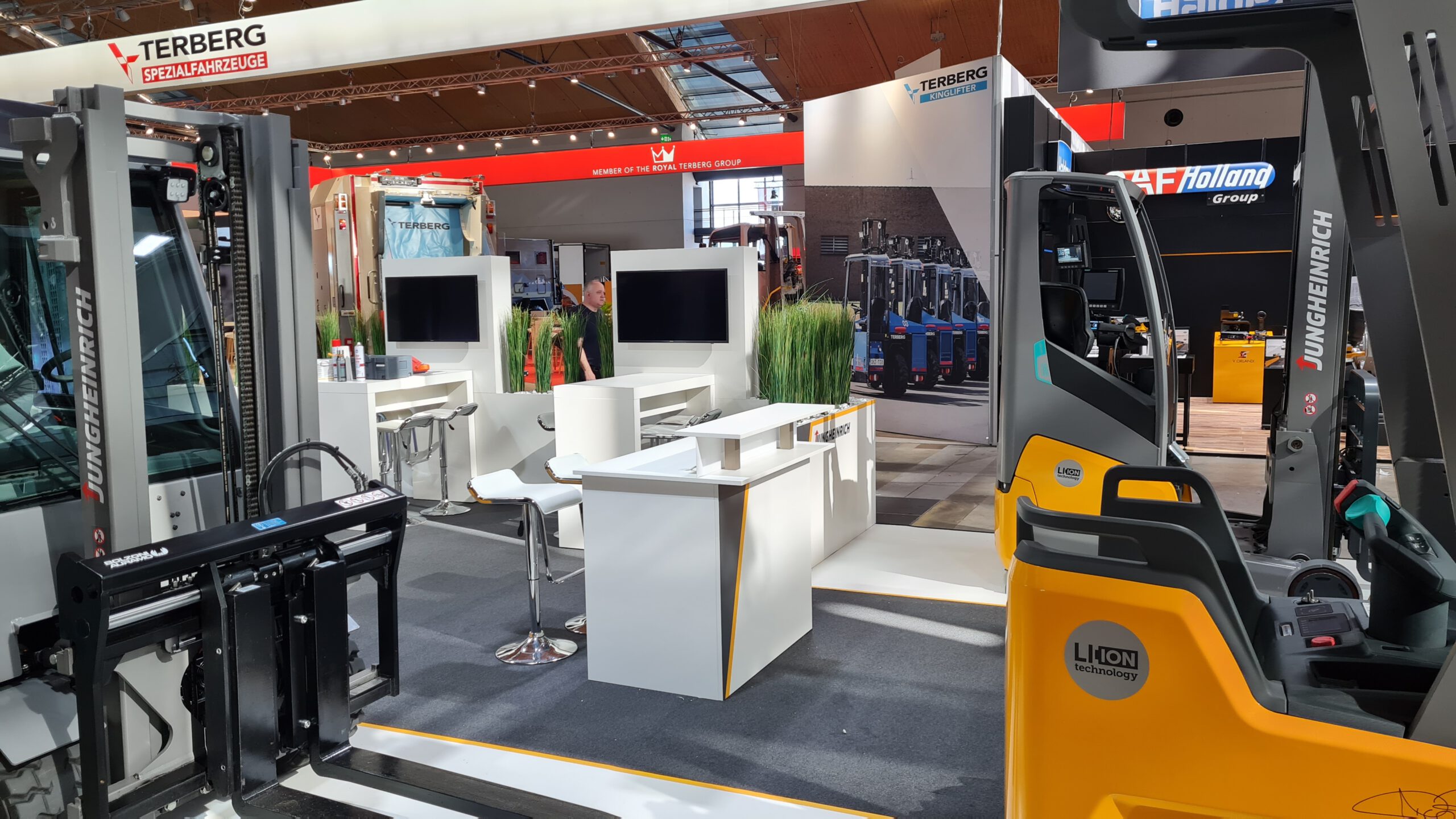 Neben Messeprojekten in Deutschland begleitete Protec Messebau die Jungheinrich Vertrieb Deutschland AG & Co. KG auch bei internationalen Messeauftritten im Ausland. Protec übernahm dabei die komplette Projektabwicklung – von der Konzeption und Planung über die Produktion bis hin zum Aufbau und zur Betreuung vor Ort. So wurde eine zuverlässige und termingerechte Umsetzung des Messebaus auch unter internationalen Rahmenbedingungen sichergestellt.