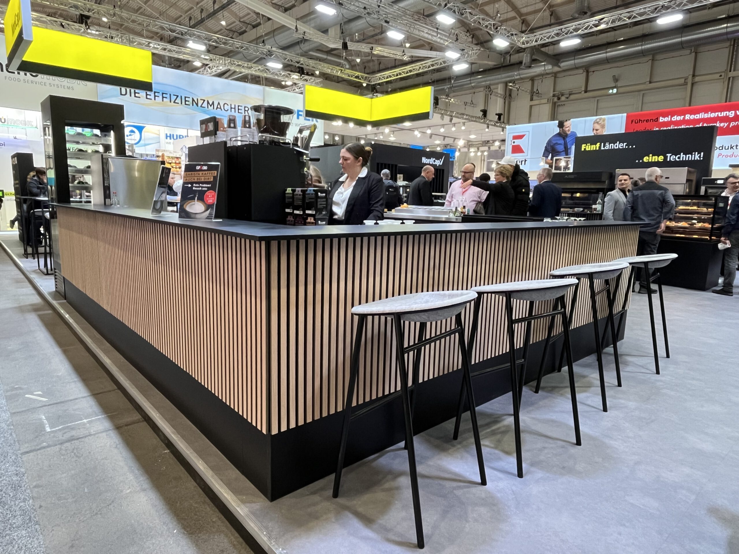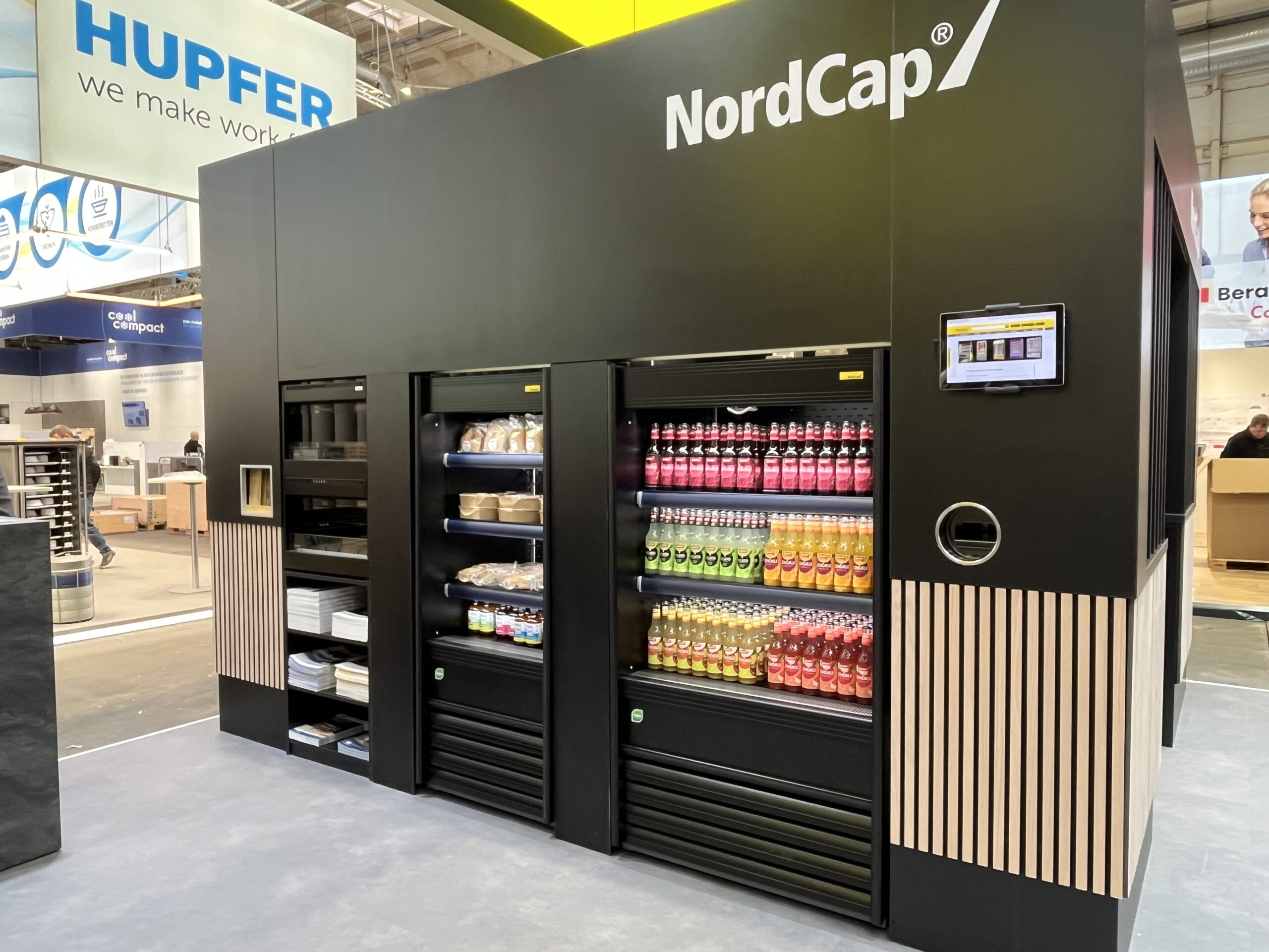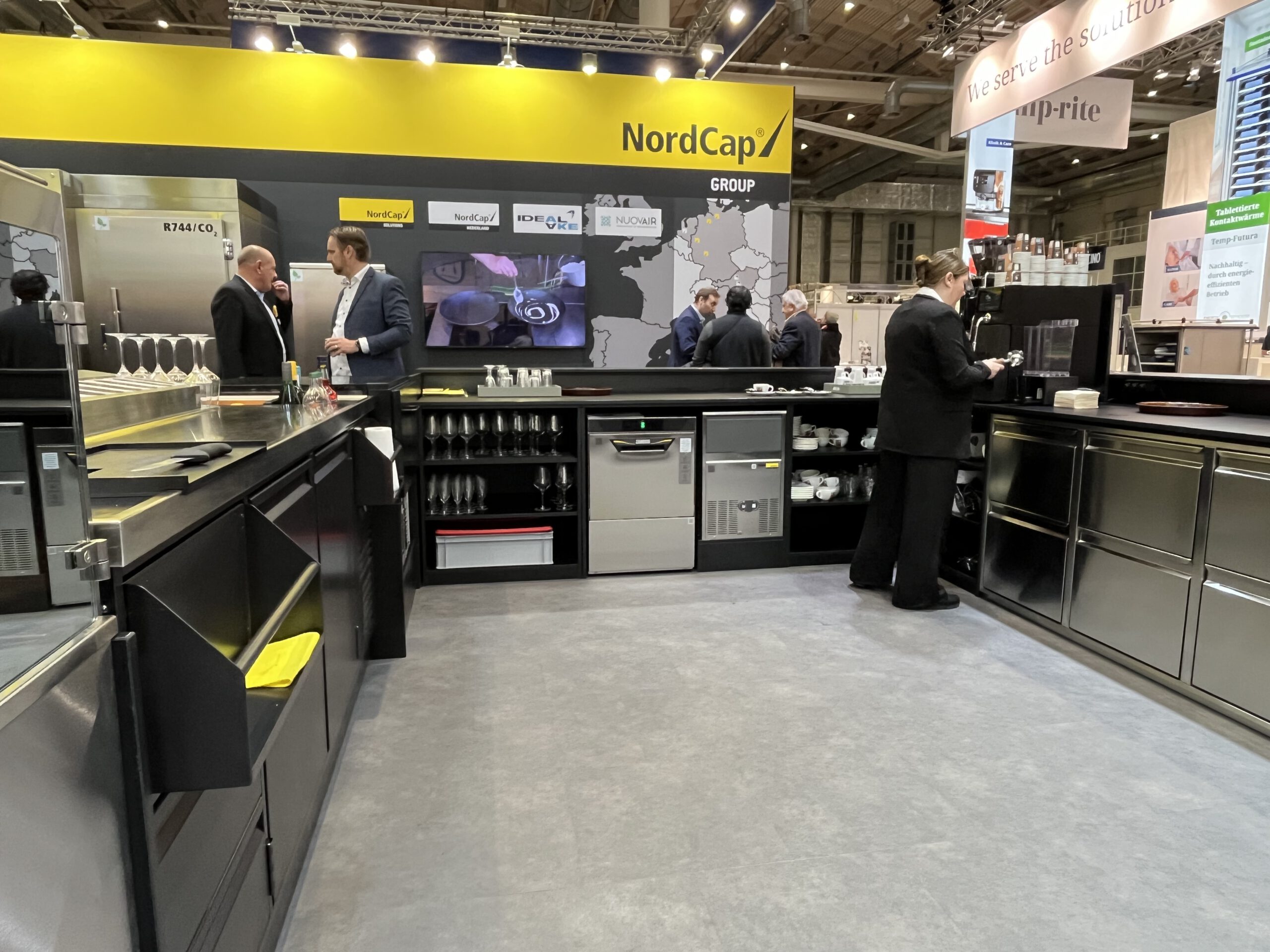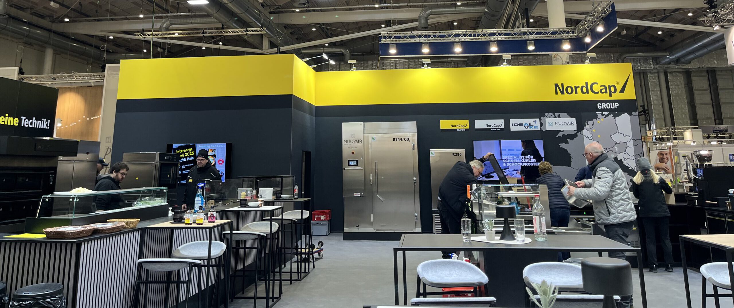Die Messestände von NordCap zeichnen sich durch eine moderne, hochwertige Gestaltung aus, die Funktionalität und Design miteinander verbindet. Kühl- und Tiefkühlgeräte, Zubereitungstechnik sowie Systemlösungen werden übersichtlich präsentiert und in realitätsnahen Anwendungsszenarien gezeigt. Ergänzt durch strukturierte Beratungsflächen und integrierte Besprechungsbereiche entsteht ein Messestand, der Technik erlebbar macht und die Markenwerte von NordCap klar transportiert.