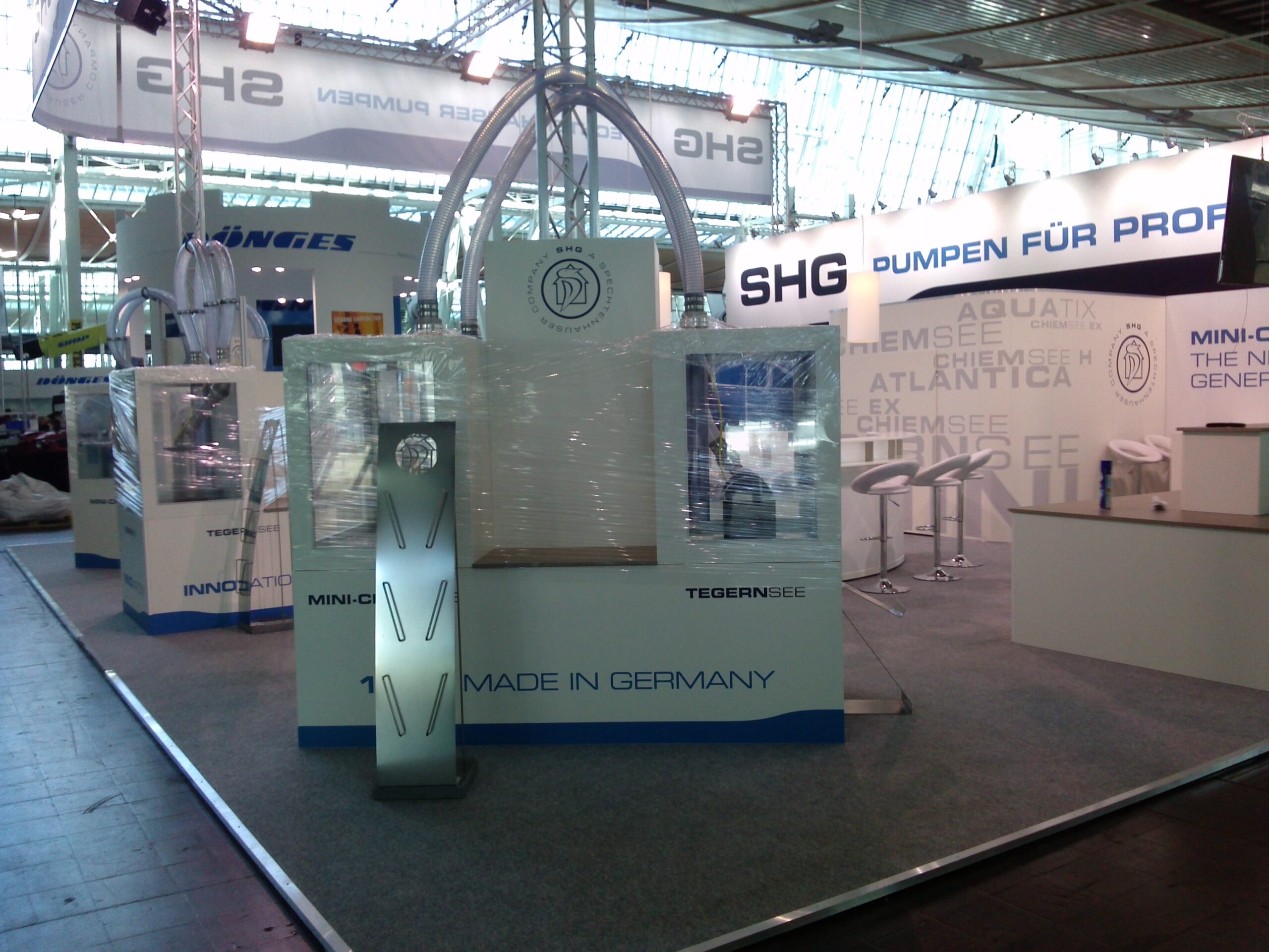 Neben der Konzeption und Gestaltung übernahm Protec Messebau für die SHG Spechtenhauser Hochw.- und Gewässerschutz GmbH die vollständige Projektbetreuung – von der Planung und Produktion über den Aufbau bis hin zur Betreuung vor Ort. Auch unter internationalen Messebedingungen wurde so eine zuverlässige, termingerechte und qualitativ hochwertige Umsetzung der Messeauftritte sichergestellt.