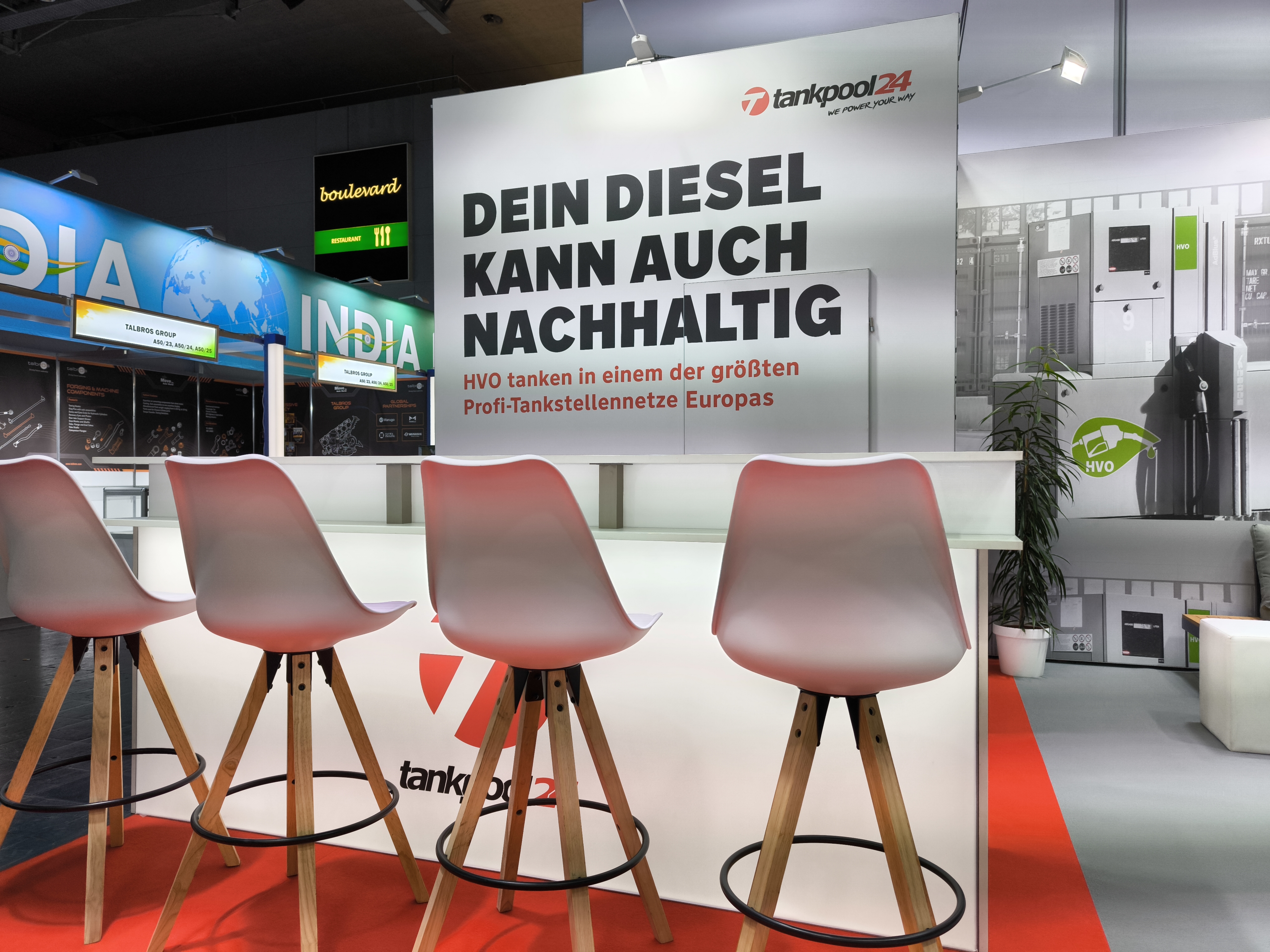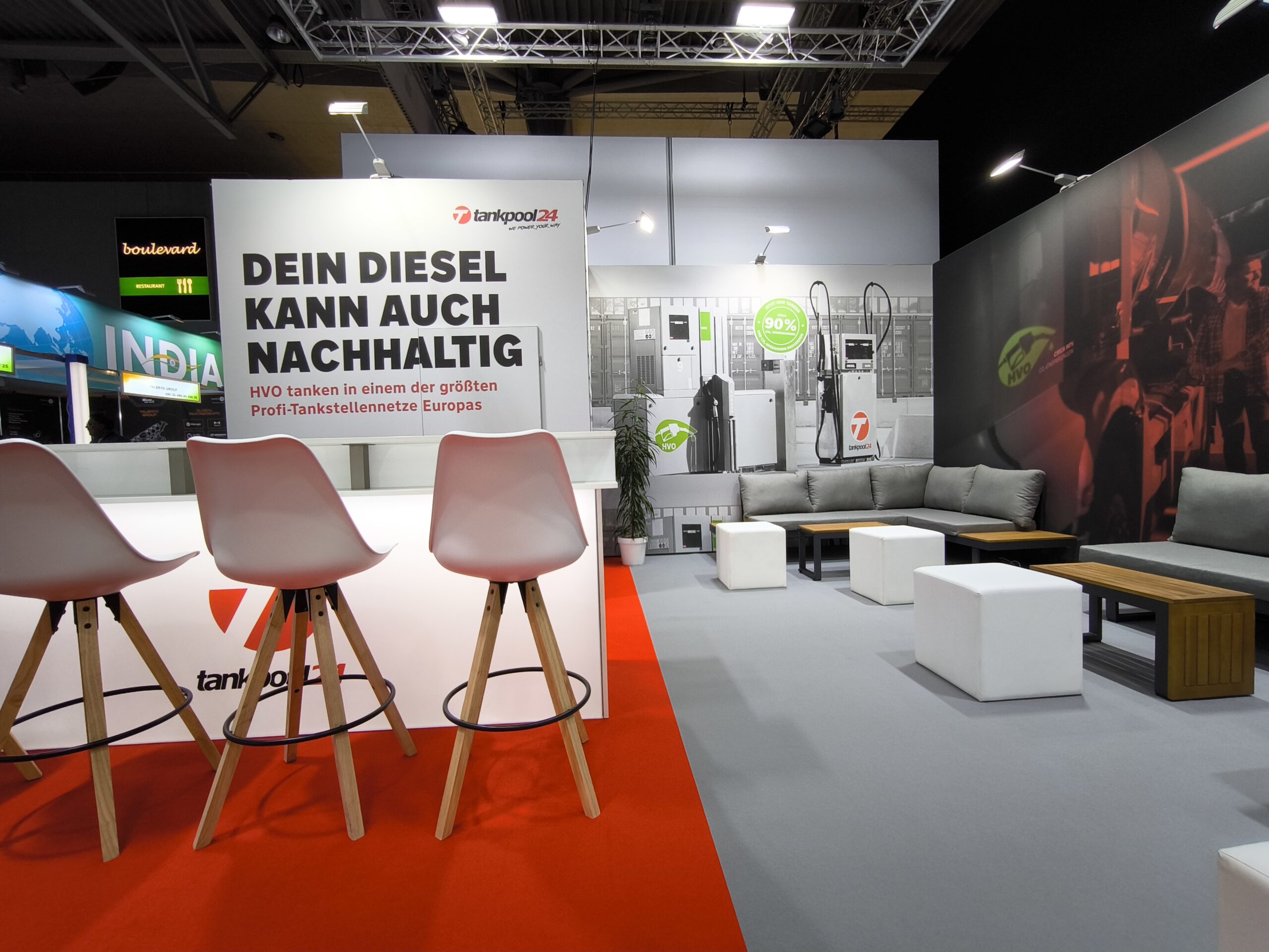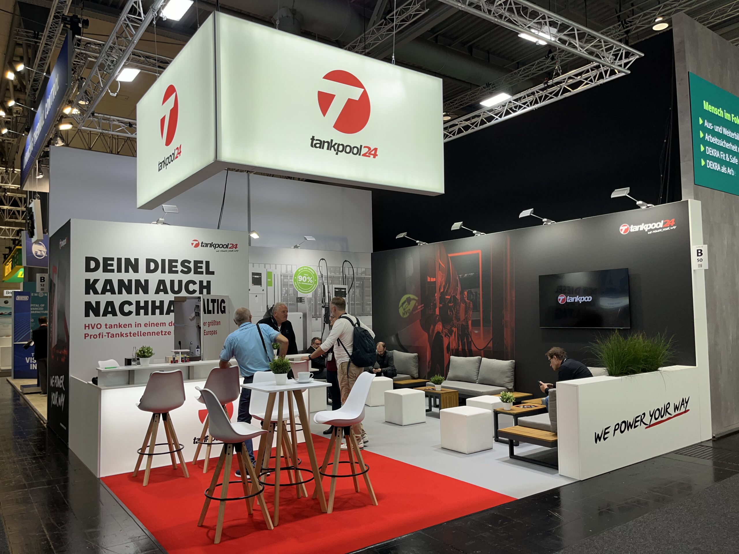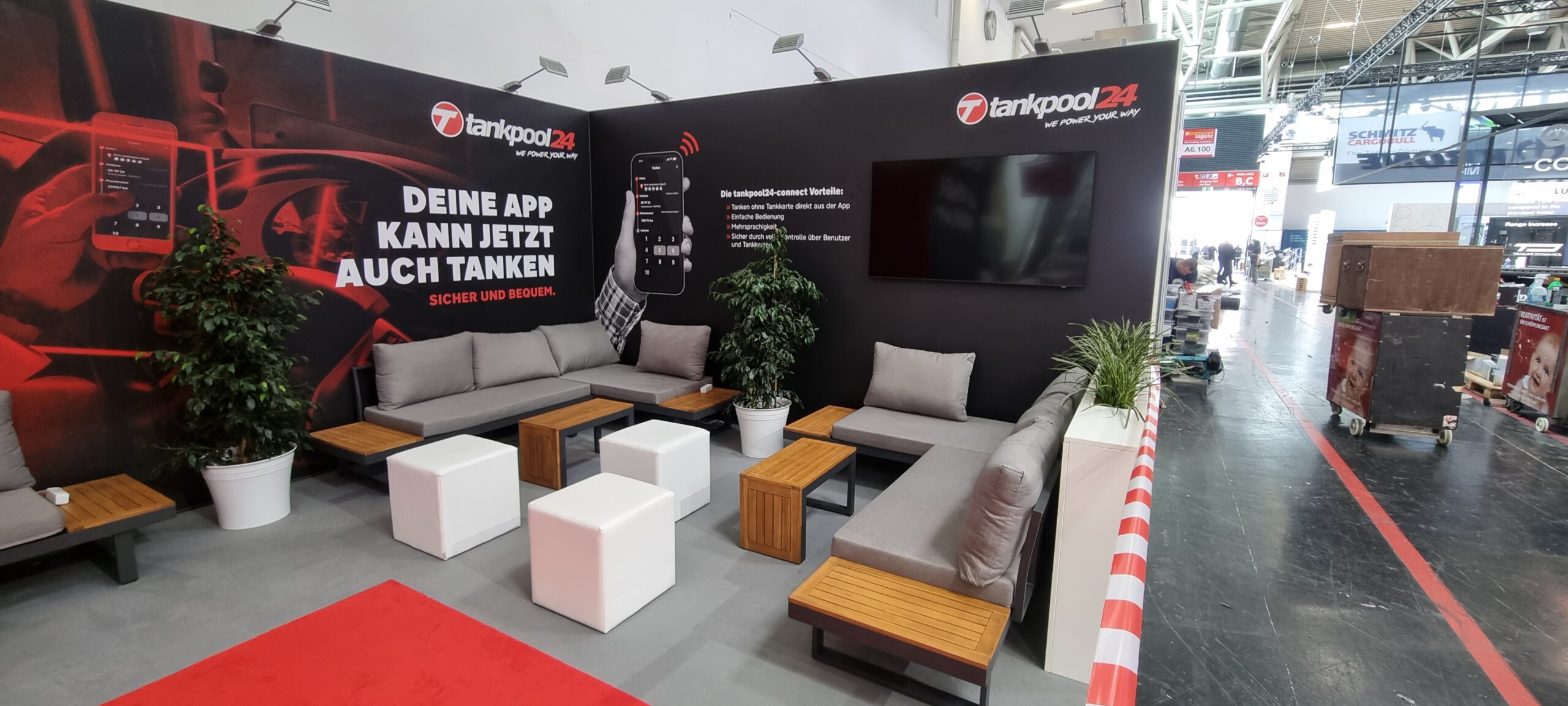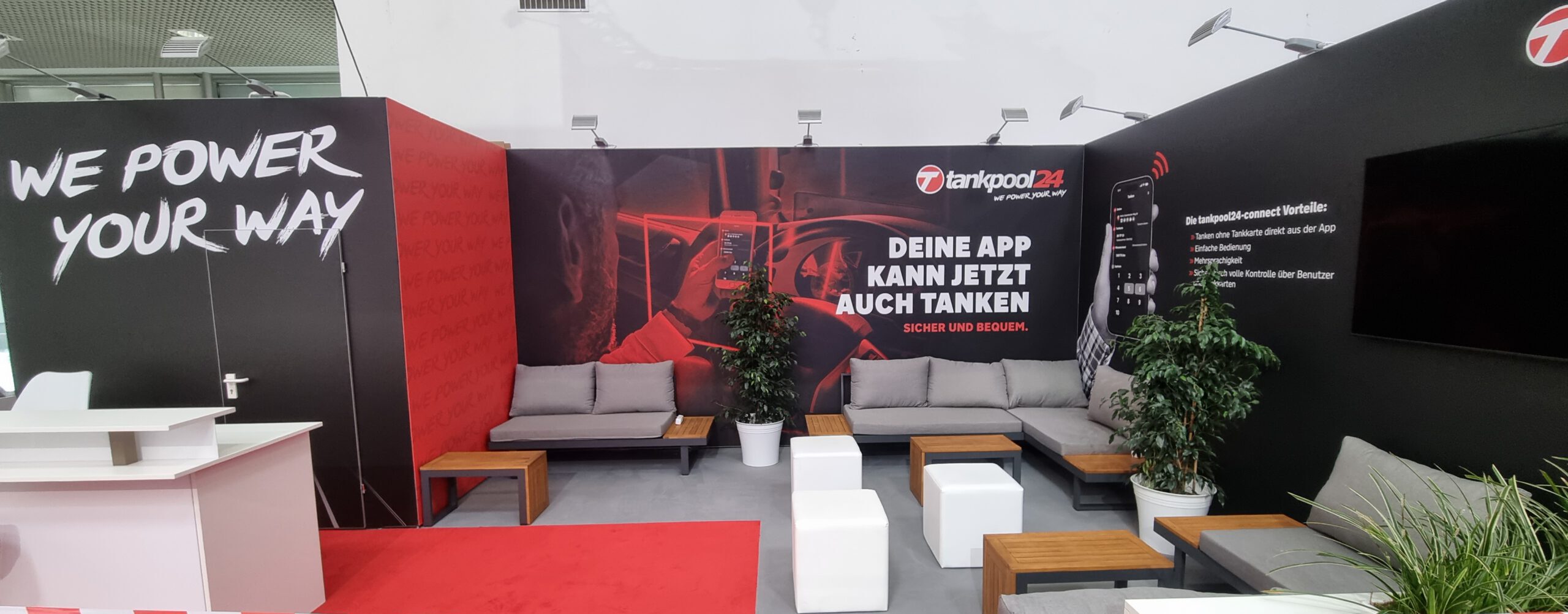 Auf den Messen IAA Transportation und transport logistic überzeugten die Messestände durch eine moderne Gestaltung, hochwertige Materialien und eine klare visuelle Ansprache. Die Leistungen von tankpool24 wurden verständlich, übersichtlich und praxisnah präsentiert – ergänzt durch funktionale Präsentationsflächen und klar definierte Gesprächszonen für Kunden und Partner.