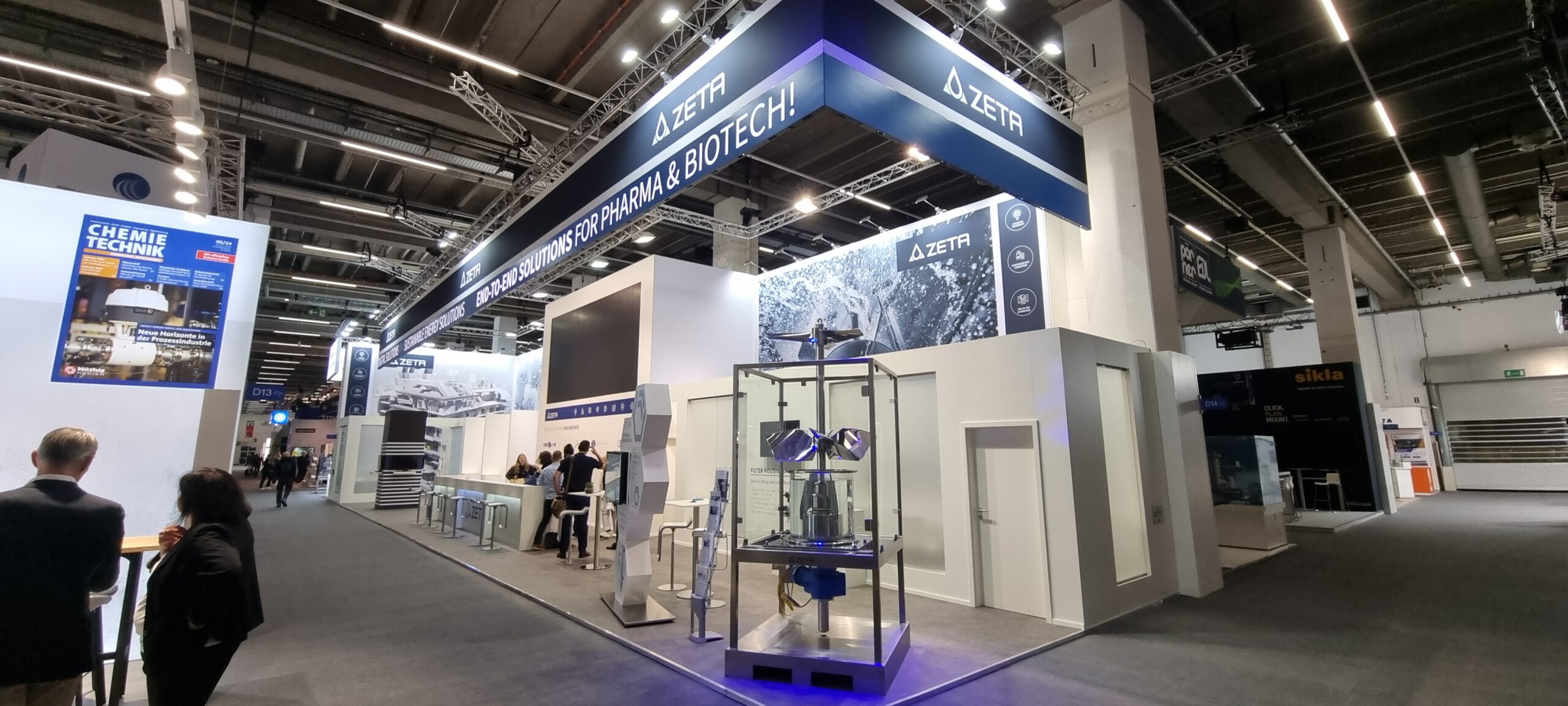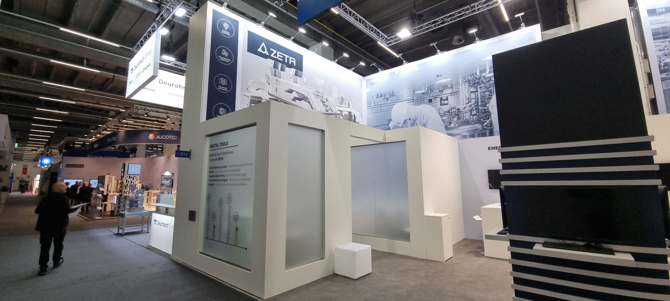 Die ZETA GmbH, international tätiger Spezialist für Anlagen- und Prozesstechnik in der Pharma- und Biotechindustrie, setzt bei ihren Messeauftritten auf die Erfahrung und Kompetenz von Protec Messebau. Im Rahmen der Zusammenarbeit realisierte Protec einen individuell konzipierten Messestand für internationale Leitmessen wie die ACHEMA. Der Messeauftritt unterstützt die Positionierung von ZETA als technologisch führenden Lösungsanbieter und stärkt die Markenpräsenz im internationalen Umfeld.