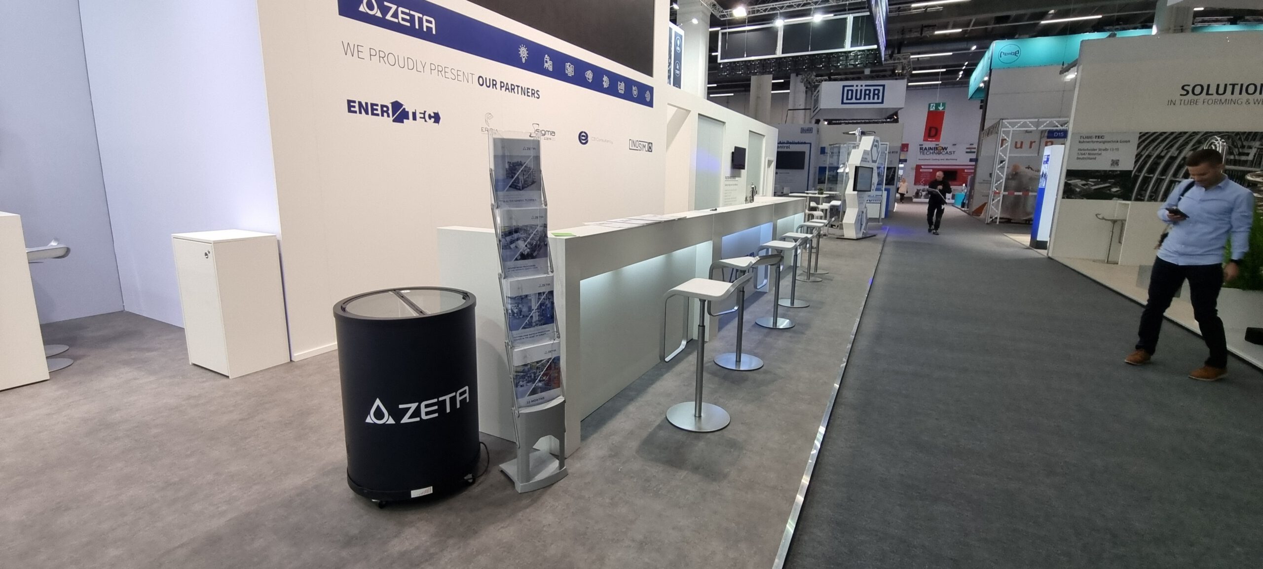 Die Zusammenarbeit zwischen der ZETA GmbH und Protec Messebau steht für Professionalität, Zuverlässigkeit und maßgeschneiderte Messebaulösungen. Das Ergebnis sind individuelle Messestände, die komplexe technische Inhalte verständlich vermitteln, Innovationskraft sichtbar machen und nachhaltige Geschäftskontakte auf internationalen Fachmessen ermöglichen.